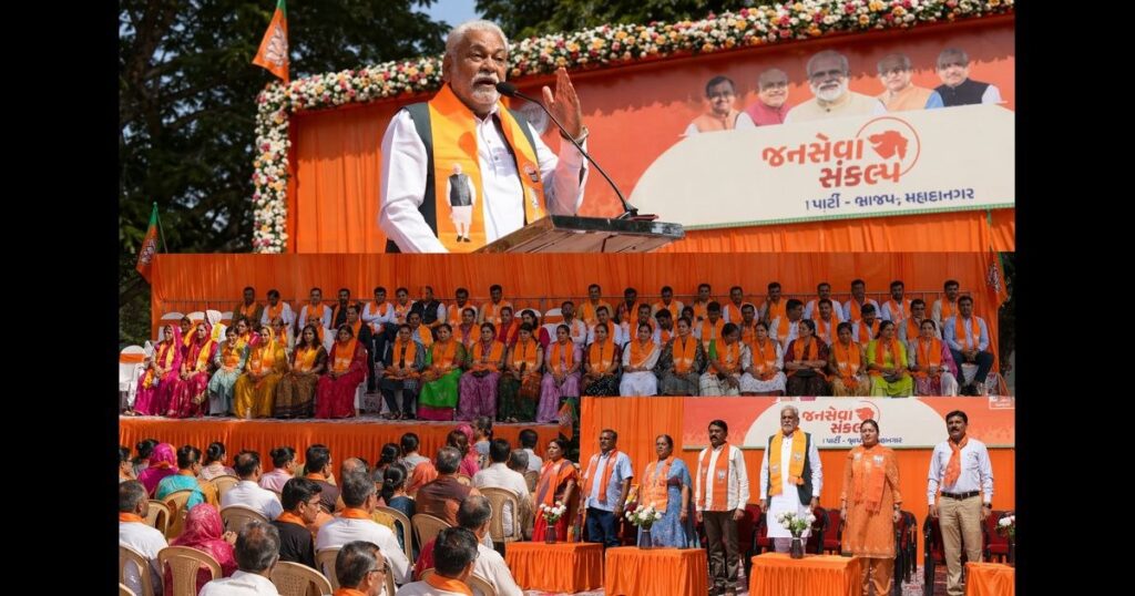 જામનગર અપડેટ્સ: ભારતીય જનતા પાર્ટી શહેર દ્વારા લાલ બંગલે ઉમેદવારો માટે સંકલ્પ સંમેલન યોજવામાં આવ્યું હતું. આ કાર્યક્રમની શરૂઆત વંદેમાતરમ ના ગીતથી કરવામાં આવેલ રાજ્યસભા ના સાંસદ પરષોત્તમ ભાઈ રૂપાલા દ્વારા ભારતીય જનતા પાર્ટી એ પસંદ કરેલ 64 ઉમેદવારોને અભિનંદન આપેલ જનસેવા એ જ પ્રભુ સેવા સંકલ્પ લેવડાવેલ નામો જાહેર થયા પછી ભારતીય જનતા પાર્ટીના 64 “ધુરંધર” ઉમેદવારોને શપથ લેવડાવવામાં આવ્યા.