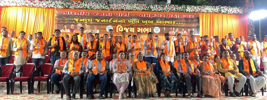 જામનગર અપડેટ્સ : ભારતીય જનતા પાર્ટી જામનગર મ્યુનિસિપલ કોર્પોરેશનમાં ઐતિહાસિક 59 સીટ ઉપર વિજય મેળવ્યો તથા 1 સીટ ઉપર બિનહરીફ થઇ આમ કુલ 60 સીટ થી ઈતિહાસ રચ્યો. આ ઐતિહાસિક જીત સંદર્ભે ભારતીય જનતા પાર્ટી જામનગર દ્વારા, જામનગર શહેરના નગરજનોને આભાર વ્યક્ત કરવા ચાંદી બજાર ખાતે ભવ્ય વિજય સભાનું આયોજન કરવામાં આવેલ.