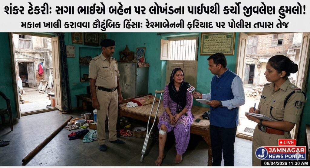 જામનગર અપડેટ્સ: જે ભાઈની રાખડી બહેનના કાંડા પર સુરક્ષાનું કવચ બનીને બંધાતી હોય છે, તે જ હાથ જ્યારે બહેન પર હથિયાર ઉપાડે ત્યારે માનવતા શરમાઈ જાય છે. જામનગરના શંકર ટેકરી વિસ્તારમાં ભાઈ-બહેનના પવિત્ર સંબંધને કલંકિત કરતી એક ઘટના પ્રકાશમાં આવી છે. માત્ર ઘર ખાલી કરાવવાની અને મિલકત હડપવાની લાલચમાં એક ભાઈ એટલો અંધ બન્યો કે તેણે પોતાની સગી બહેન પર જીવલેણ હુમલો કરતા પણ ખચકાટ ન અનુભવ્યો. આ ઘટનાએ વિસ્તારમાં ચકચાર મચાવી દીધી છે અને સવાલો ઉભા કર્યા છે કે શું હવે પોતાના જ ઘરમાં બહેનો સુરક્ષિત નથી?