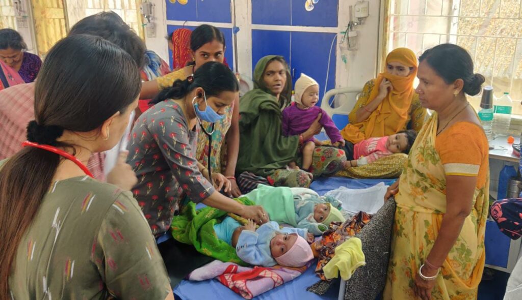 સૌરાષ્ટ્રની સૌથી મોટી એવી જામનગર શહેરની ગુરુ ગોવિંદસિંહજી હોસ્પિટલના બાળ વિભાગમાં બાળ દર્દીઓની સંખ્યા વધતા બે નહીં ત્રણ નહીં પરંતુ એ બેડ પર ચાર-ચાર બાળ દર્દીઓને સારવાર આપવાની નોબત આવી પડી છે. છેલ્લા એક પખવાડિયાથી સતત બાળ દર્દીઓનું પ્રમાણ વધતું જ રહ્યું છે. જેમાં દિવસેને દિવસે ઉછાળો આવી રહ્યો છે.